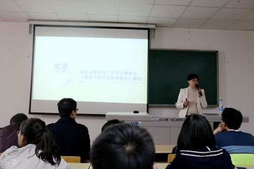 本期业余党校,旨在培养入党积极分子,推动学生党建工作。作为开班讲座,解读《高等学校学生管理规定》意义重大。《高等学校学生管理规定》是新时期学生管理工作的重要法规,是高校决策的重要依据,是规范学生在校期间学习生活的重要制度,通过本次讲座使入党积极分子提高认识,从而规范自己的行为,更好的在同学中起到模范带头作用。