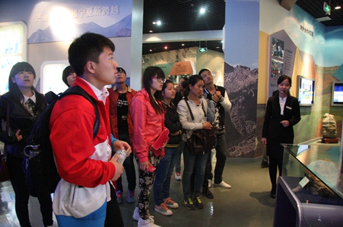宁夏博物馆是中国省级综合性历史博物馆。它多层次多角度地反映了宁夏的历史文化、民俗风情及地方特色。走进宁夏博物馆,就被其深厚的历史气息所感染,在讲解员的带领下,我们参观了贺兰山岩画、朔色长天、盛世回乡等展厅,了解到了属于宁夏的特有文化。在参观的过程每位积极分子认真的聆听讲解员详细的解说,无不为馆内物品所蕴藏的丰富内涵所震惊。随后在王艳梅老师带领下,学员们步行去参观了宁夏地质博物馆。在宁夏地质博物馆内同学们再一次被天文科技所吸引。奇妙的地球知识、奇形怪状的石头、天外来客---陨石,以及宁夏特有的地貌,无不让同学们大开眼界。