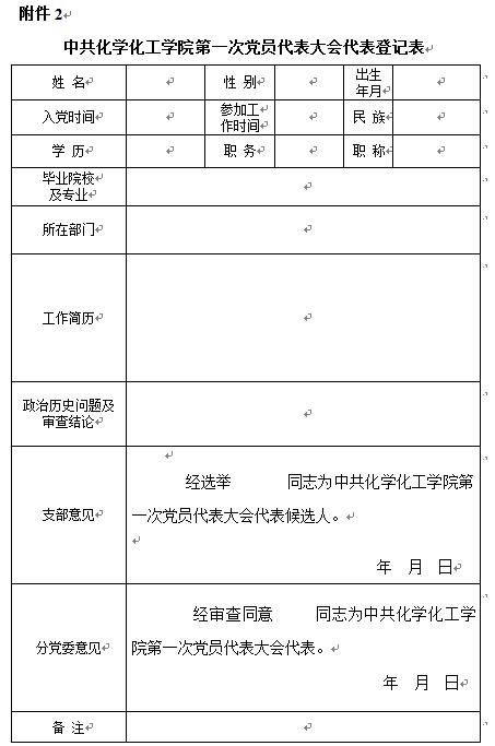 第一次党员代表大会代表登记表