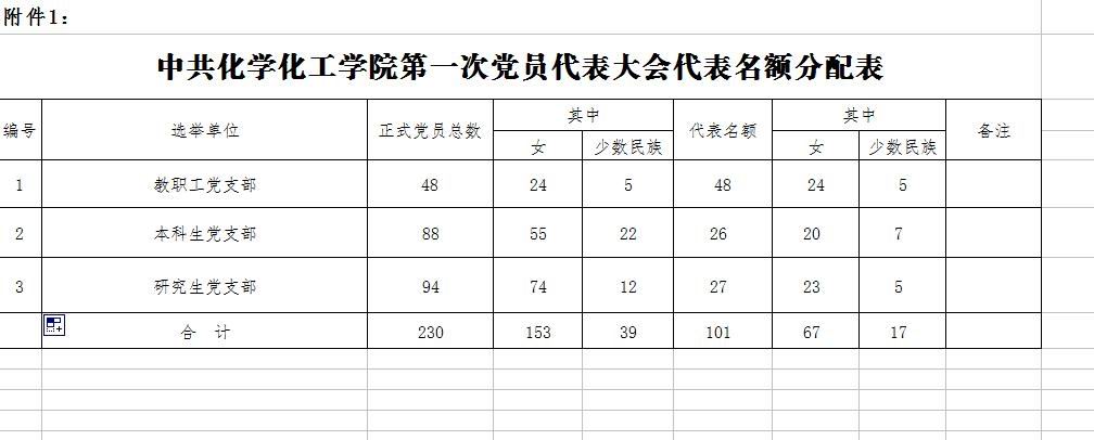 第一次党员代表大会代表名额分配表