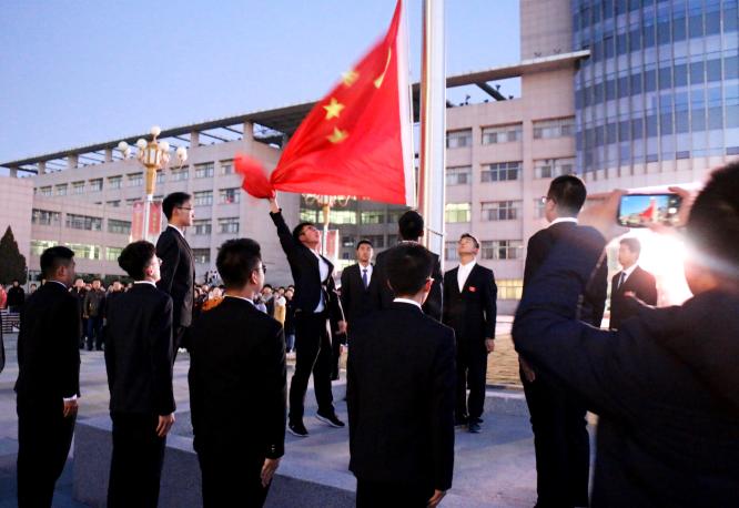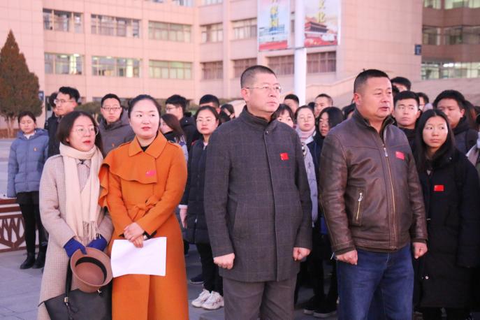 党委书记高继明、党委副书记桂晓兵、刁俊及部分教师代表和全体学生党员、发展对象、入党积极分子、学生干部参与本次升旗仪式。