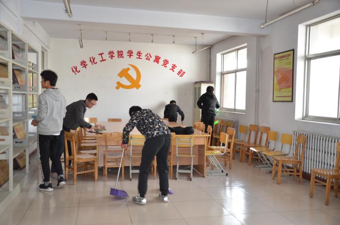 志愿者协会组织的“大扫除”活动顺利开展,化学化工学院团委学生会各部门学生干部,认真清扫了10号楼党员活动室及103会议室。