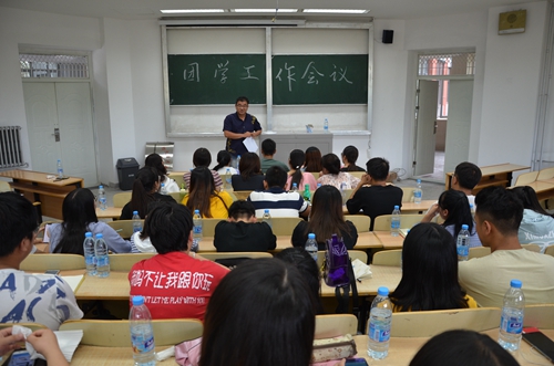 于文萃校区一教131室组织召开了2018-2019学年第一次团学工作会议,学院辅导员曹洋老师出席并主持会议,全体学生干部参加了会议。