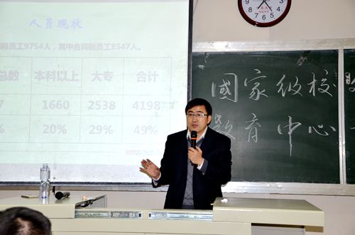杨总一到场就受到全场同学的热烈欢迎,他通过讲述自己就业、择业的过程,生动的拉开了讲座的序幕。杨总通过介绍宁夏宝丰能源集团历史及发展情况,使同学们了解了宝丰集团如何从一个小小的加油站发展成集原料生产、产品输出于一体的循环经济产业链。随后,又以“民营企业需要什么样的人才”,“大学生员工职业成长的困惑”两个方面,阐述如何从众多缺乏社会经验的应届毕业生中脱颖及当今社会就业的前景。