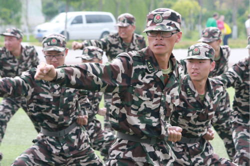 烈日下,艰苦训练,咬牙,闭眼,任豆大的汗水滴撒在操场之上,也不言放弃。