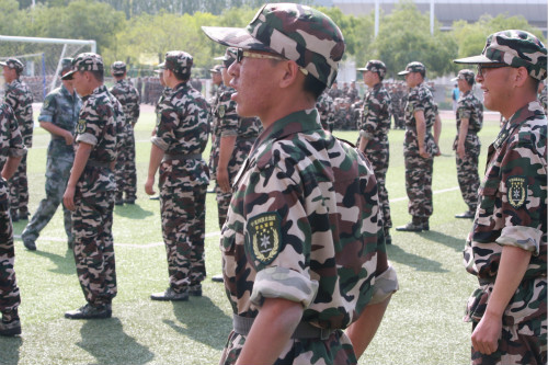 学生已能熟练掌握军训中的基本要领,跟随教官的动作指令迅速作出反应。每天早晨八点,在C区操场上,同学们在整齐的队列中,一丝不苟地站着军姿,尽自己所能使动作标准。看着同学们越来越规范的动作,站在操场上的辅导员和教官向他们投去了鼓励的眼神。