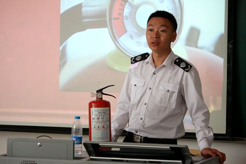 首先,罗警官讲解了“全民消防安全宣传教育纲要”的重要性,举出若干火灾事例,使在场人员深刻意识到火灾的危害性,明确了“隐患胜于明火,防范胜于救灾,责任重于泰山”的重要性。之后,罗警官向在场人员阐述了我国消防工作的方针:预防为主,防消结合,并强调:只要每个团体做好自己的工作,就会预防很多火灾事故。他以校园火灾事例告诫在座学生,禁止在宿舍内使用违章电器,以确保自身和他人的人身财产安全。罗警官以示范加体验法,使在座学生掌握了灭火器的使用方法,并向学生展示火场逃生三大步。