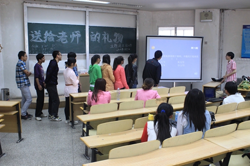 求学征程,一直有一种人在我们身边默默的支持、关心、鼓励着我们,他们从事一个圣神的职业,他们有一个高尚的名字:老师。借此次活动表示对老师的尊敬。在活动中同学们通过由化教班同学介绍未来的计划和对教室职业的看法、爱老师主题造句、模拟教学情境演绎、化学专业知识竞答等方式深化同学们对老师的情感,加强对教师这一职业的认识。
