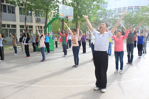 “打游戏打出浑浊双目,刷微信刷出满脸痘痘,亲,我们运动吧!”这是化工学院楼前一条醒目的横幅。近日来,化工学院各班级团支部开展以“走出宿舍、走下网络、走向操场”为主题的系列团日活动,同学们在课余齐聚操场,纷纷投身于各项主题的户外中,c区操场上遍布着化工学子的身影。 活动以广大师生喜闻乐见、参与度高的趣味运动为主要形式:毽球、排球比赛热火朝天,打沙包、过肩传球乐此不疲,跳大绳、十人九足合作默契,贴膏药、连接加速呼声震天。学院领导、老师也参与到活动中来与同学们共同运动,同学们纷纷表示这样的活动趣味盎然,收获良多。