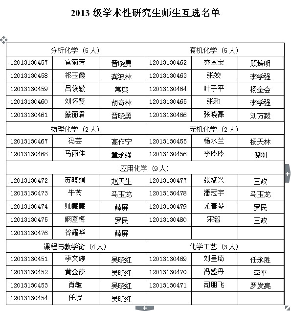 2013级全日制学术性研究生师生互选名单