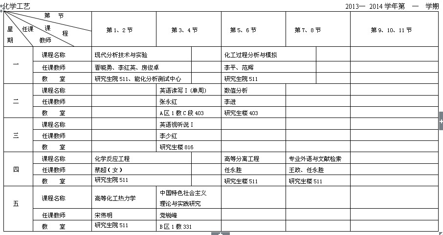 2013级全日制硕士研究生课表-化学工艺