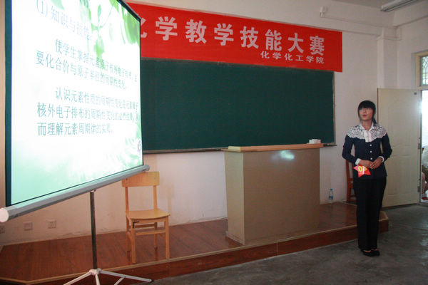 “化学教学技能大赛”决赛在工科楼六楼举办。本次比赛邀请到了学院副书记王彦庚、副院长倪刚、有机组赵堂教授、分析组韩晓霞教授以及化学教育专业吴晓红教授担任比赛评委,部分12级学生进行了现场观摩。