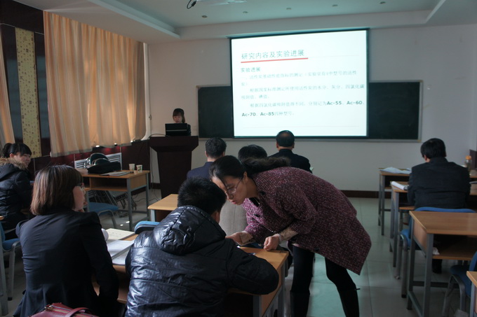 中期考察在严谨、活泼的气氛中展开,各位同学就进入研究生学习的论文阶段所开展的实验工作加以整理、汇总和总结,用科学、形象、规范的ppt课件向导师组及研究生同学们展开汇报。