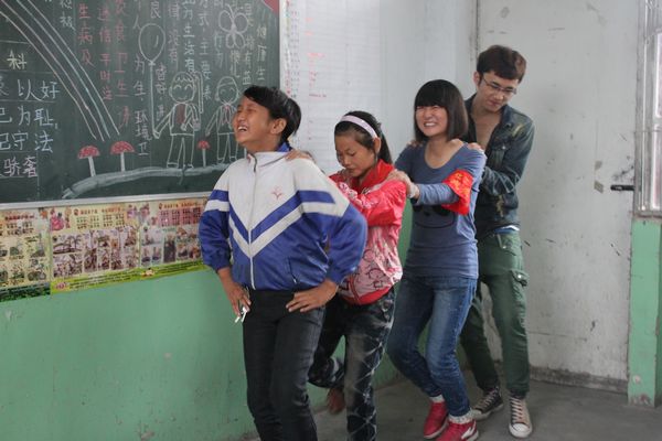刚刚下课,小学生们就把志愿者围了起来,看到那些熟悉的哥哥姐姐,孩子们高兴极了。虽是自己的节日,教师们依旧坚守在工作岗位上,接下来上演的便是志愿者精心准备的由老师和孩子们共同参与的主题班会。