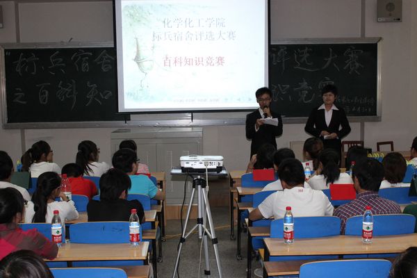 五月,送走春的盎然,迎来夏的火热。为树立标兵模范宿舍,引领宿舍文明新风尚,5月30日下午两点半,由化工学院主办的“标兵宿舍”评选活动决赛暨百科知识竞赛在北教222教室拉开帷幕。化工学院党总支副书记潘瑞,各级辅导员,各优秀宿舍成员及化工学院11级100余名学生参加了活动。