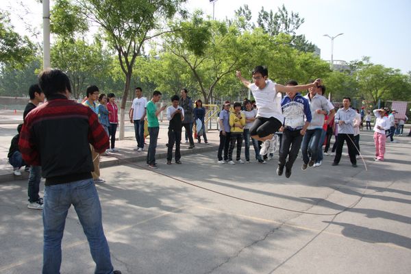 参加本次活动的主要是11级的同学们,他们以宿舍为单位,分别可以参加以下五个活动:心心相印运气球、蹦蹦跳跳真可爱、齐心协力跳大绳、绑腿跑、铁人三项赛,现场报名的同学接连不断。参赛的同学活力四射、激情飞扬,在比赛过程中,同学们坚持“友谊第一,比赛第二”的运动理念,队友之间互相鼓励,互相帮助,现场气氛热烈。