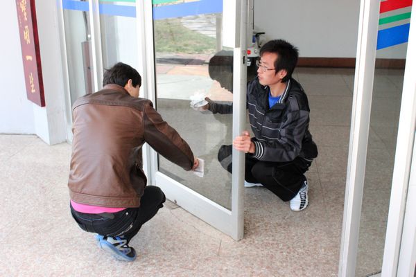 同学们伴着正午温暖的阳光积极参加劳动,干劲十足。不出一个小时的功夫,化院大楼已然是窗明几净,映着楼前鲜嫩绿草朝气蓬勃。