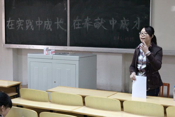 2012年4月9日,学院2011级辅导员杨扬老师为第十五期党课学员带来了题为“在实践中成长,在奉献中成才”的专题讲座。