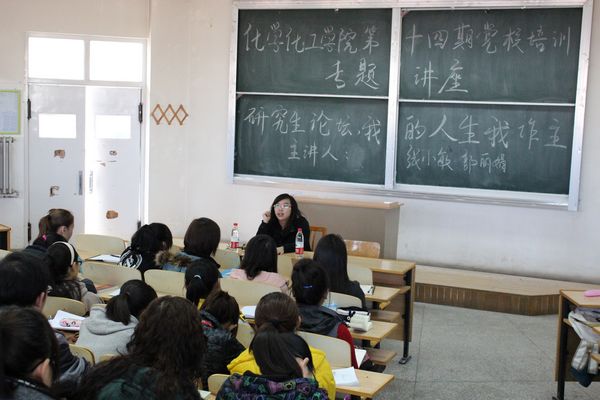 第十四期业余党校培训200余名入党积极分子聆听了讲座,讲座由研究生党支部副书记张小敏和研究生党员胡丽娟主讲。