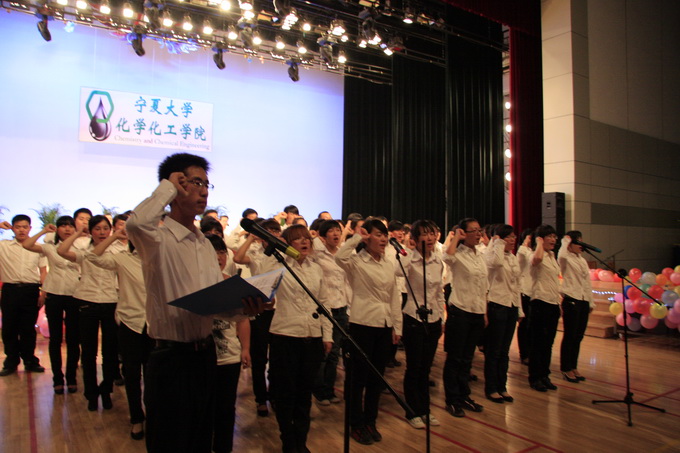 54名预备党员庄严肃穆的入党宣誓,给党的90岁的生日献礼。之后,潘瑞副书记宣读了“庆祝建党90周年”表彰决定,张宁副书记宣读了“十佳标兵”,“优秀毕业生”等表彰决定,同时对获奖同学给予厚望。在此,赵利宁副书记对化工学院取得的成绩表示充分肯定,并给予殷切希望,希望化院能有一个更美好的未来。