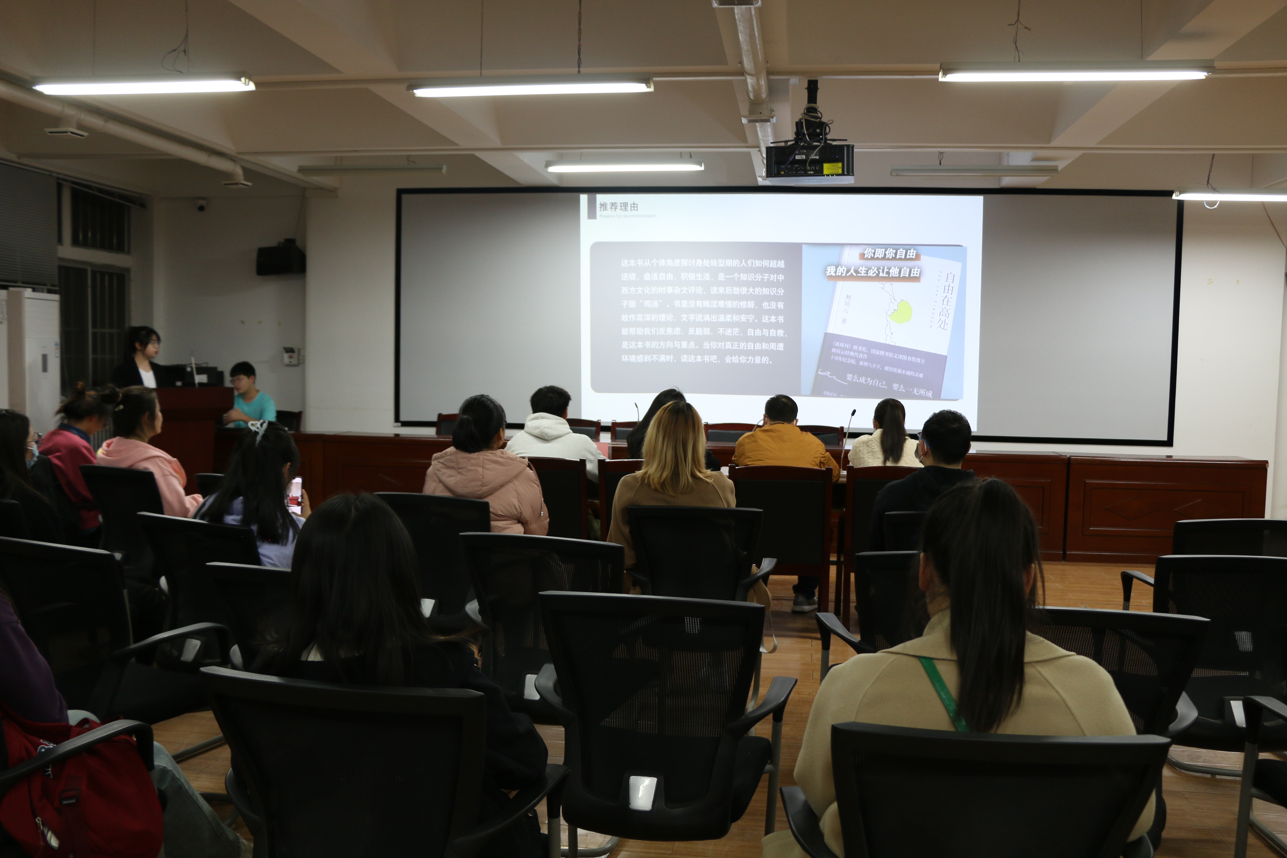 郑文惠宣布活动规则和注意事项。紧接着,每位选手就自己选择的读物进行介绍分享,现场气氛活跃,分享者与现场同学老师进行互动,积极探讨书中内容细节。评委就选手分享的过程表现情况进行点评,并为获奖同学颁发获奖证书。