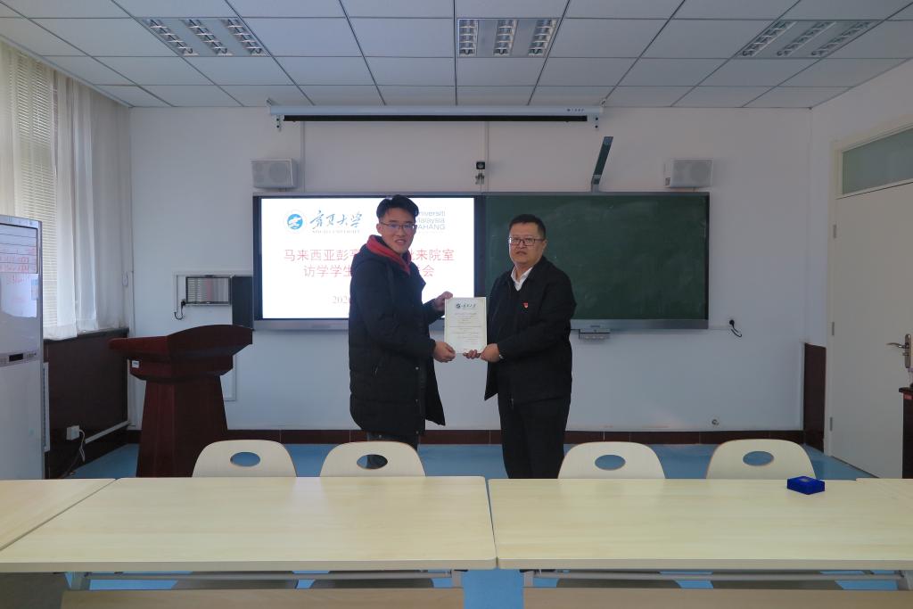 为进一步加强院室国际合作交流工作,欢送马来西亚彭亨大学首批来访学生顺利完成访学任务,返回马来西亚,1月13日下午,院室党委书记高继明,副书记桂晓兵、刁俊,国重室常务副主任赵天生,副院长任永胜,学办主任王艳梅,项目负责人范辉老师,在知化楼303室,与首批马方6名学生举行座谈暨欢送会。