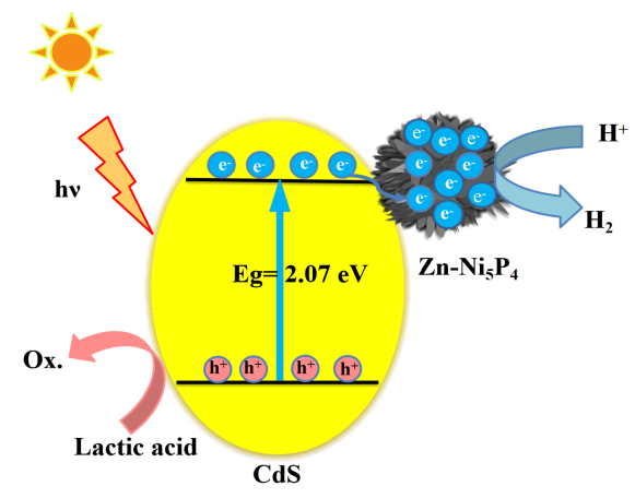 氢能作为最具潜力的清洁能源而备受关注。光催化制氢是一种理想但极具挑战性的技术。助催化剂是提升产氢效率的有效手段之一,然而贵金属由于其成本高限制了光催化技术的发展。在前期的研究(ACS Sustain. Chem. Eng. 2022, 10, 5949-5957)中发现非贵金属助催化剂的电容对光激发电子具有“电容催化”效应,即储存电子(正效应)和束缚电子释放(负效应),少量贵金属可以抑制电容负效应而提高催化产氢性能。采用新方法彻底取代贵金属具有十分重要的意义。