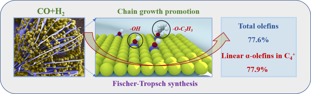“煤基应用催化”团队在合成气催化转化线性α-烯烃研究方面取得了新进展,设计了一种新型亲水层状Fe基催化剂,实现合成气在典型费托条件(280°C, 1.5 MPa)下转化为烯烃,其中线性α-烯烃(LAOs in C2+)选择性高达77.9%。相关研究成果发表在国际知名期刊《Fuel》(IF=8.035),论文题目:Highly selective formation of linear α-olefins over layered and hydrophilic Fe3O4/MAG catalysts in CO hydrogenation。论文的第一作者为91黑料