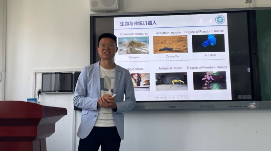 5月25日,冒杰博士的报告主题是“功能介电材料的设计、制备及其应用”,介绍了智能可变形介电材料(介电弹性体)在柔性机器人、人工肌肉等领域的应用,及介电储能材料、绝缘材料、电子封装材料等新兴领域的发展前景和方向。