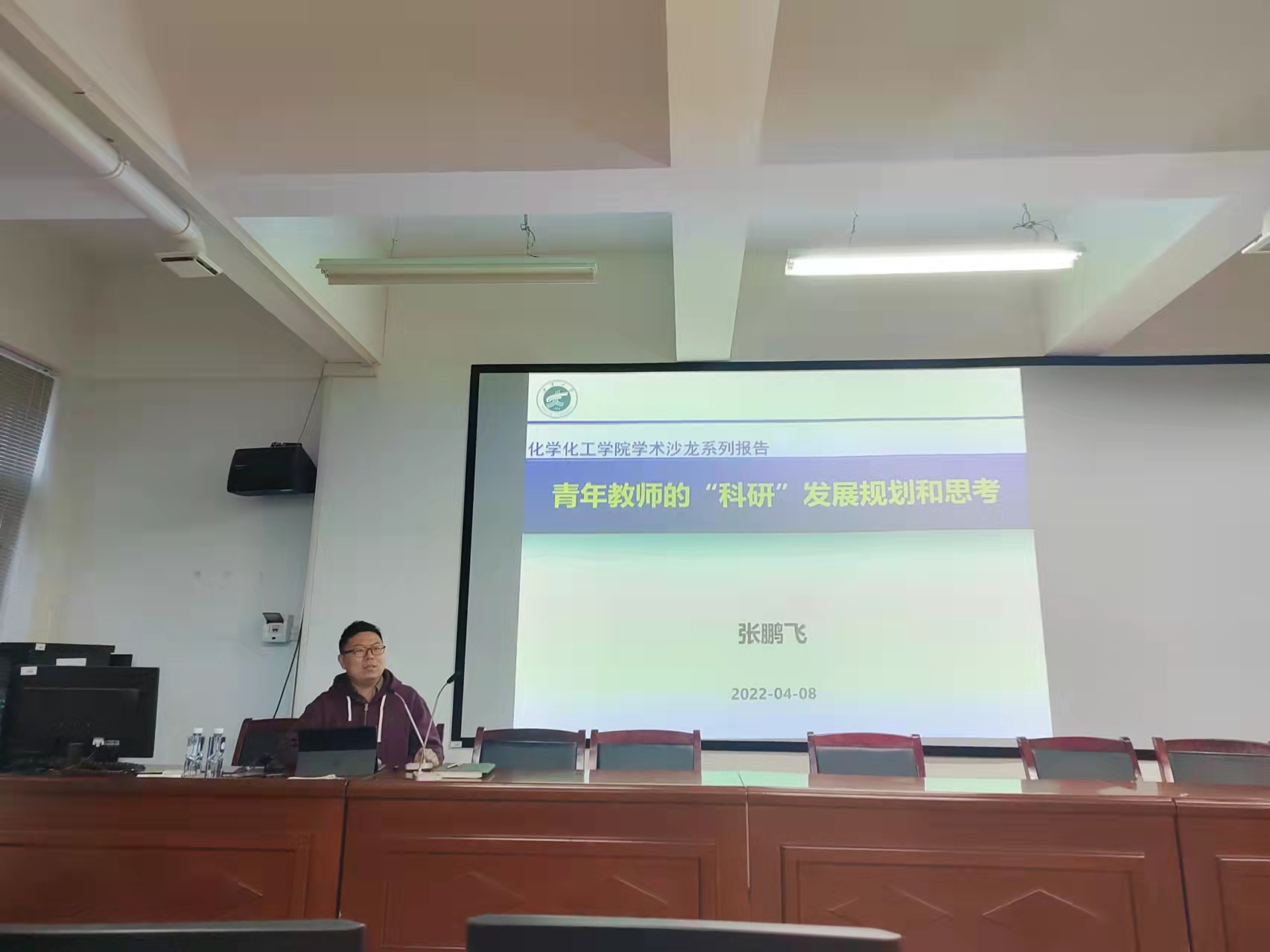 学术沙龙系列报告会在知化楼115会议室召开。该场报告会邀请学院常务副院长张鹏飞教授主讲,他以“青年教师的科研发展规划和思考”为题,与学院部分师生交流探讨,引起了老师和同学们的强烈共鸣。
