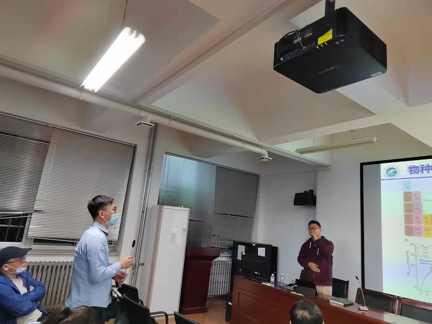 报告伊始,张鹏飞教授以自己的科研历程为起点,分享了个人在科研学术道路上的历程与感悟,并向各位青年教师建议在今后的科研工作发展中一定要有清晰的规划,找准定位、明确方向。随后,张教授以高熵催化剂的制备方法和过程为例,将自己目前所取得的学术成果向各位师生倾囊相授。接下来,与会师生积极参与讨论、提问,提出自己在科研中所遇到的困惑与问题,张教授皆耐心为大家一一解释,答疑解惑。张教授讲解深入浅出、幽默风趣、引人入胜,不时引起一阵阵掌声。