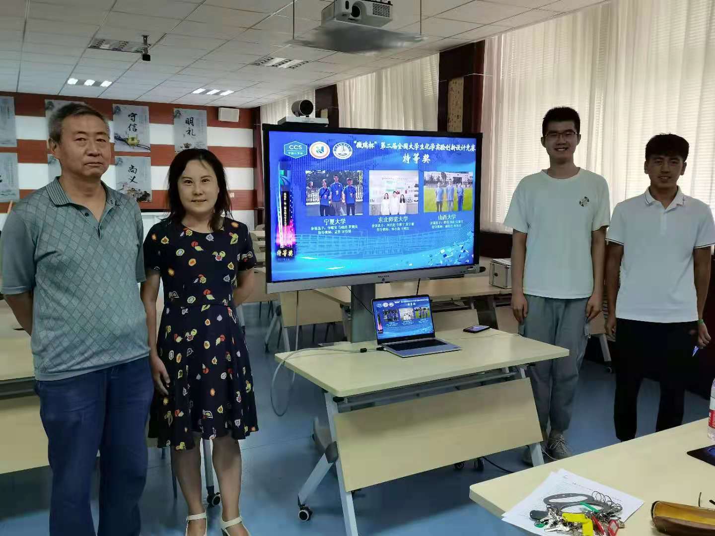 师生组成的我校代表队(指导教师:孟哲、宋伟明,参赛学生:李峪安、马晓虎、罗期允),获得西北赛区一等奖,成为宁夏高校唯一代表入围全国总决赛。总决赛中,我校团队奋勇拼搏,同来自中国科学技术大学、浙江大学、同济大学在内的90支代表队展开激烈角逐,荣获特等奖。这是我校化学一流本科专业建设中取得的重要成绩,也是我校不断强化立德树人,全面提高人才培养质量的又一硕果。