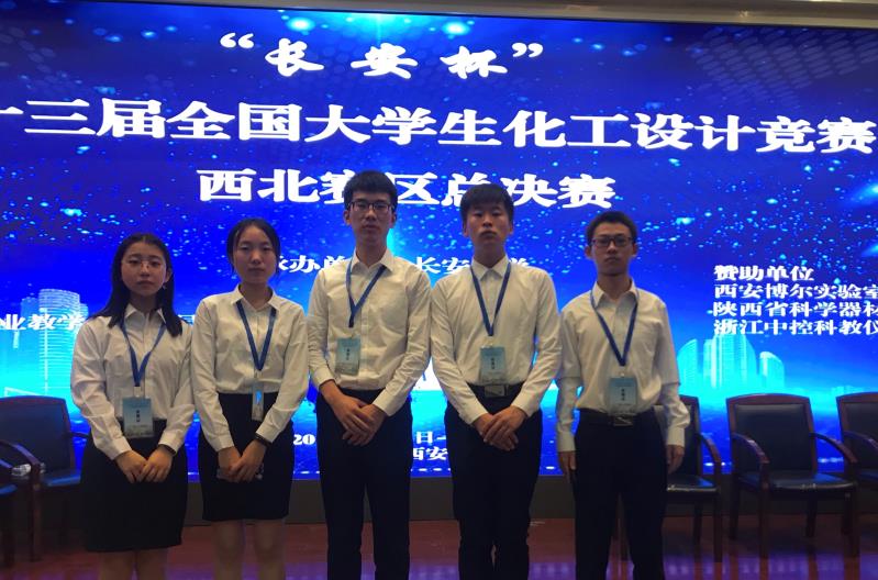 2016级化学工程与工艺专业本科生张珏铷、白友祥、陈杰、贺婉萍及制药工程专业本科生钟义组成的“制者见酯”队经过校内评审、赛区网评、赛区现场决赛,最终获得赛区一等奖。