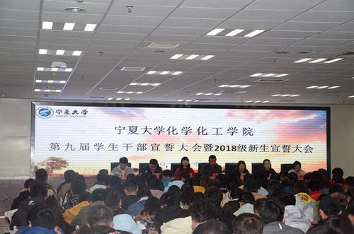 第九届学生干部任命名单。随后,陈显伟带领第九届学生干部进行宣誓,“在学习工作中树立先锋模范作用,正风气,立规矩,做实事,拼成绩”一句句誓词发自肺腑,掷地有声,表达出学生干部顽强拼搏的决心,以及蟾宫折桂、舍我其谁的信心。学生会主席陈显伟代表第九届学生干部做了慷慨激昂地发言,表示定会以饱满热情,勇于创新,争做先锋,为学院双一流及良好学风建设贡献自己的青春力量。会上还为2018级新生发放制作精美的课堂公约书签,由自律委员会主任高钰婧带领2018级全体学生宣誓课堂文明公约和宿舍文明公约,希望大家能够严于律己,切实按照公约严格要求自我。