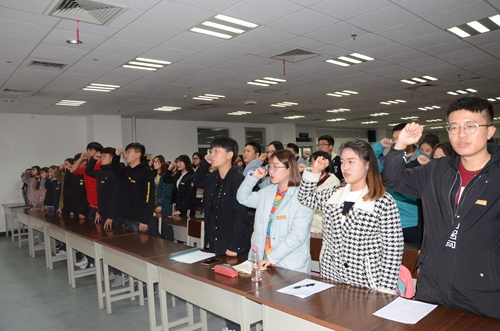 第九届学生干部宣誓大会暨2018级新生宣誓大会于文萃校区二教国防生之家隆重举行。学院党委副书记桂晓兵,学生办公室全体辅导员老师出席此次会议。会议由兼职辅导员张聪主持,全体学生干部、2018级本科生及研究生全体参加此次大会。