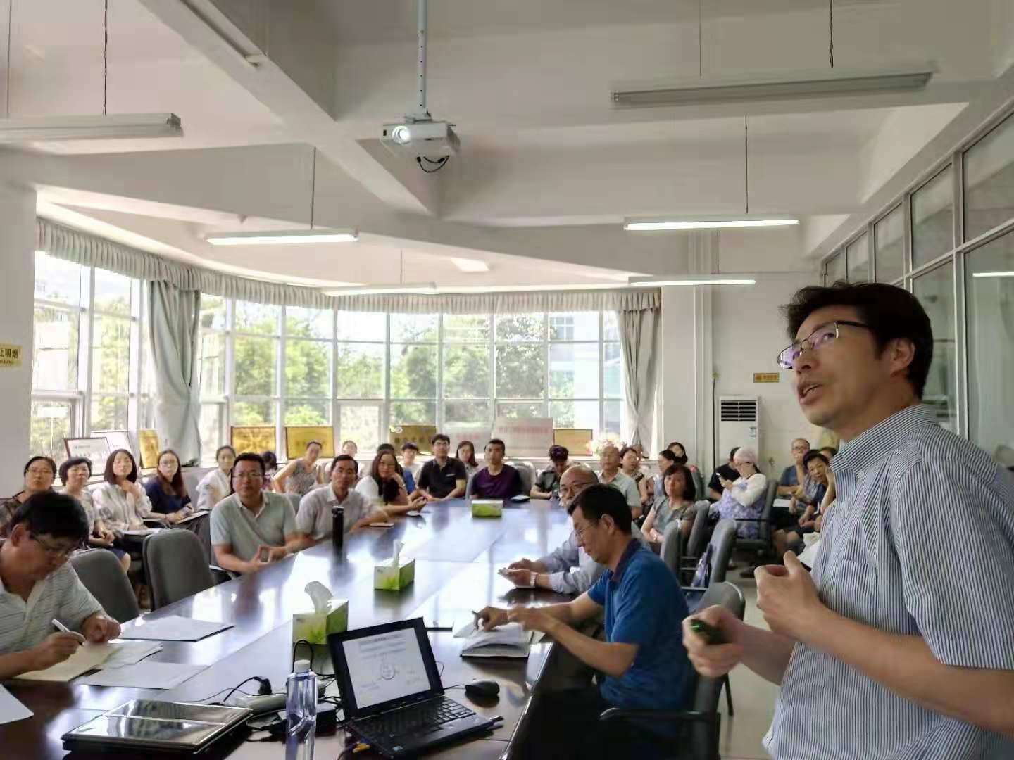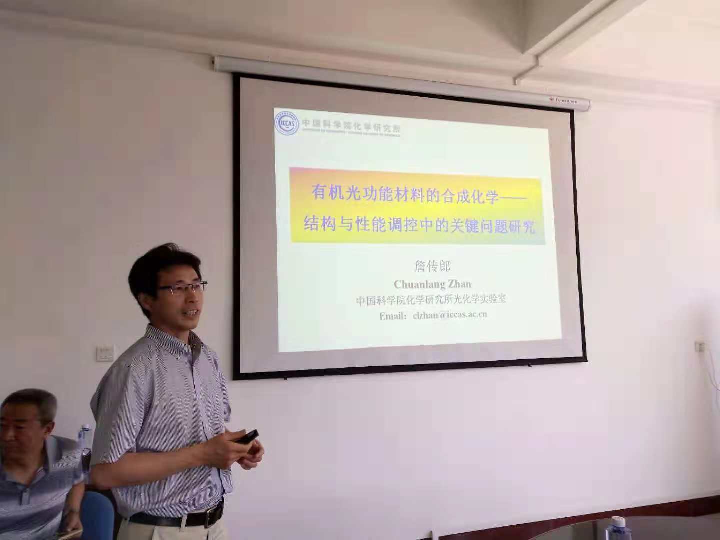 2018年7月11日,为促进91黑料 一流学科的发展与“化学”硕士学位点的建设,学院邀请中国科学院化学所詹传郎教授来91黑料 进行学术交流。双方就学院“化学”学科的发展进行交流,詹教授对91黑料 “化学”学位点的自评估工作提出了一些很好的建议。当天下午,詹教授还为学院全体研究生导师做了一场“有机光功能材料的合成化学——结构与性能调控中的关键问题研究”学术报告。