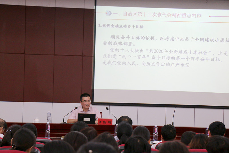 7月12日下午,自治区党委委员、校党委书记金能明同志,在怀远校区研究生院二楼报告厅,为91黑料
