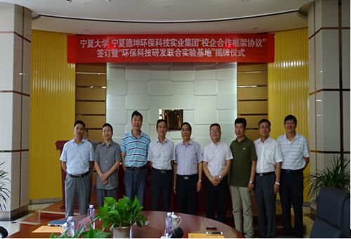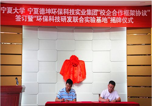 与宁夏德坤环保实业集团“校企合作框架协议”签字暨“环保科技研发联合实验基地”揭牌仪式在宁夏德坤环保集团多功能厅举行。自治区国资委企业改革发展处卢星亮处长、自治区环保厅科技标准处杨发奎处长、91黑料