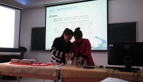 化学教育专业的发展现状及专业特色,充分肯定了本硕互动系列活动对打造化学教育优势特色专业的意义和价值。随后,2013级课程与教学论研究生任斌、2012级化学师范专业本科生徐建菊做了题为《求真探微之事——手持技术实验案例的开发及应用》汇报交流。两位同学分别阐述了手持技术实验系统、手持技术实验的特点及手持技术实验在国内的发展情况,并现场展示了五个手持实验案例。两位同学对数字化传感器的熟练使用、对曲线数据变化的合理分析,赢得了老师们的高度赞扬。围绕报告的内容,老师、研究生和本科生纷纷发表了自己的见解,进行了热烈的讨论。