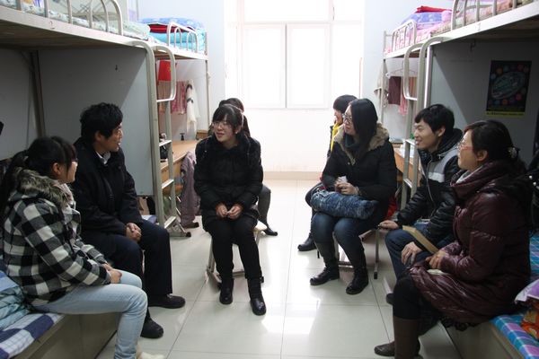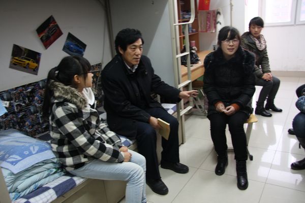 副校长许兴在化工学院党总支副书记潘瑞、辅导员杨扬老师的陪同下,深入学生宿舍看望慰问了化工学院贫困生代表,并送上了慰问金。