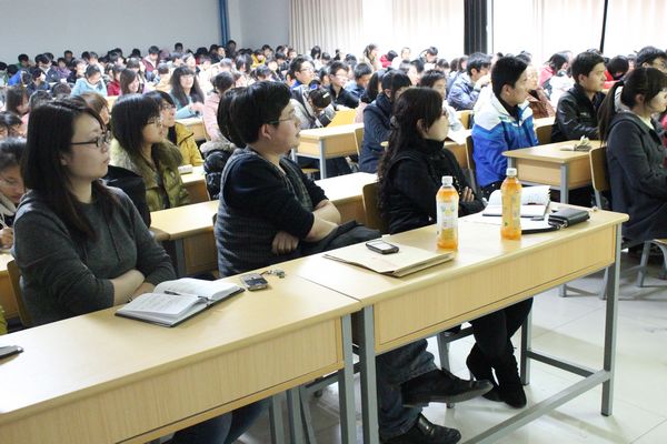 学生作了《当代化学化工学子面临的机遇与选择》的专题讲座。学院党总支副书记潘瑞、各年级辅导员、近300名学生聆听了讲座。