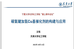 王悦教授以“碳氧键加氢Cu基催化剂的构建与应用”为题介绍了一碳化学领域催化剂设计新方法,揭示了催化材料吸附-扩散平衡效应,为构筑商业化Cu基催化剂奠定了坚实基础,并拓展了乙二醇变革性生产新技术。