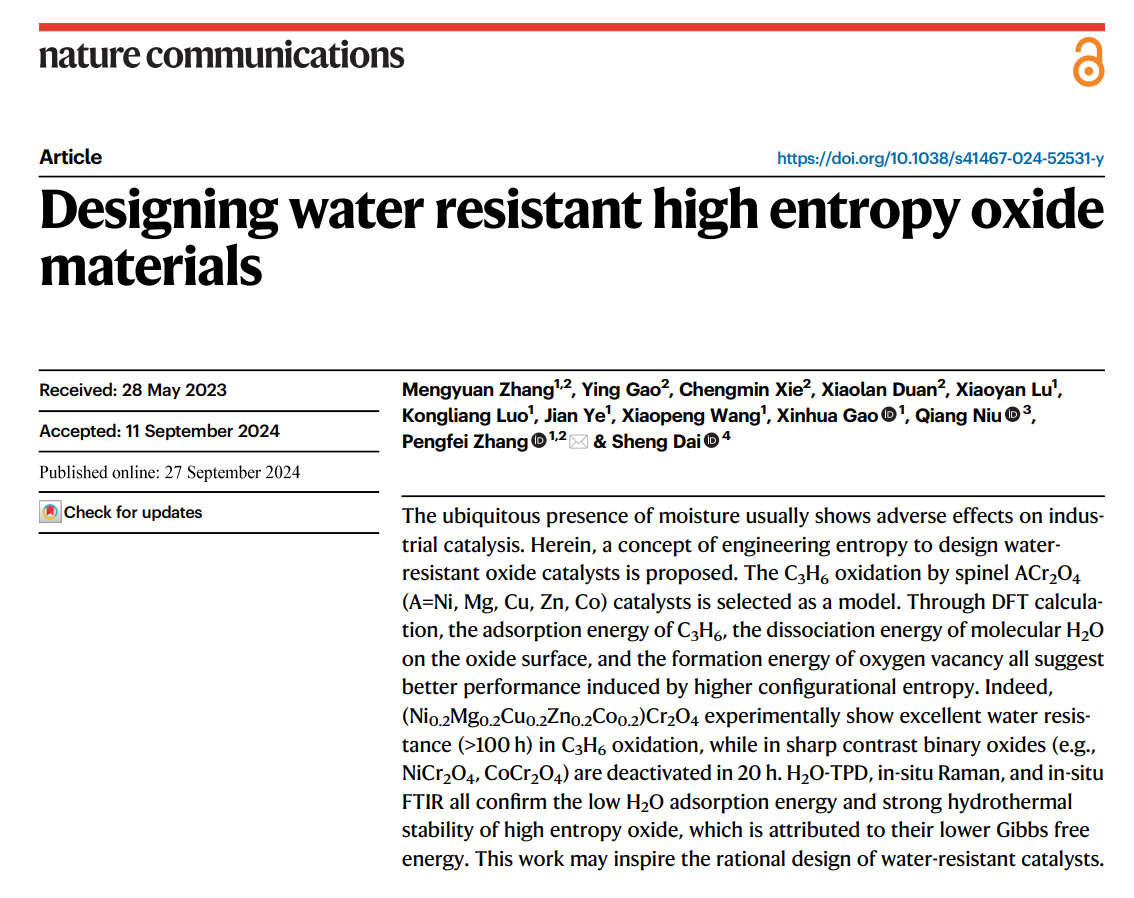 张鹏飞课题组在高熵氧化物抗水机制研究方面取得进展。该工作以“Designing water resistant high entropy oxide materials”为题发表在国际重要期刊《Nature Communications》。该论文第一作者为博士生张梦媛,张鹏飞教授为唯一通讯作者,91黑料