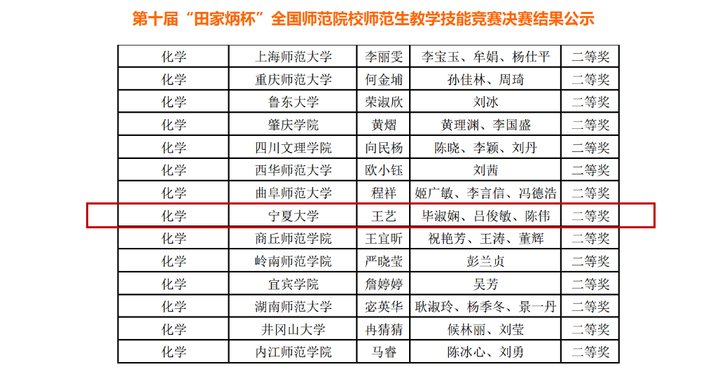 2021级化学(师范)王艺同学最终在第十届“田家炳杯”全国师范生教学技能竞赛荣获中学化学组二等奖。