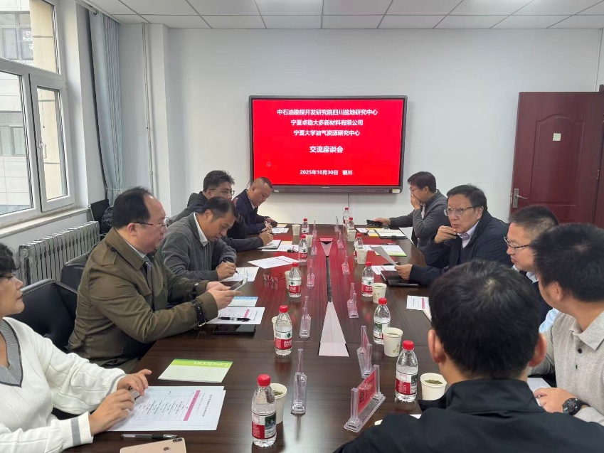 的基本情况、油气中心近一年的工作,中石油勘探开发研究院四川盆地研究中心高级工程师卢斌、王南分别汇报了四川盆地中心近年来工作、页岩气开发技术创新,宁夏卓稳大多新材料有限公司总经理张鹏翱介绍了金属陶瓷耐磨防腐技术在油田的应用。在交流研讨环节,各方围绕“我国非常规油气开发技术创新”、“油气井防腐技术”、“校企合作方式”等进行了深入探讨,为进一步加强油气领域技术创新与深化产学研合作提出了建设性的意见及建议。