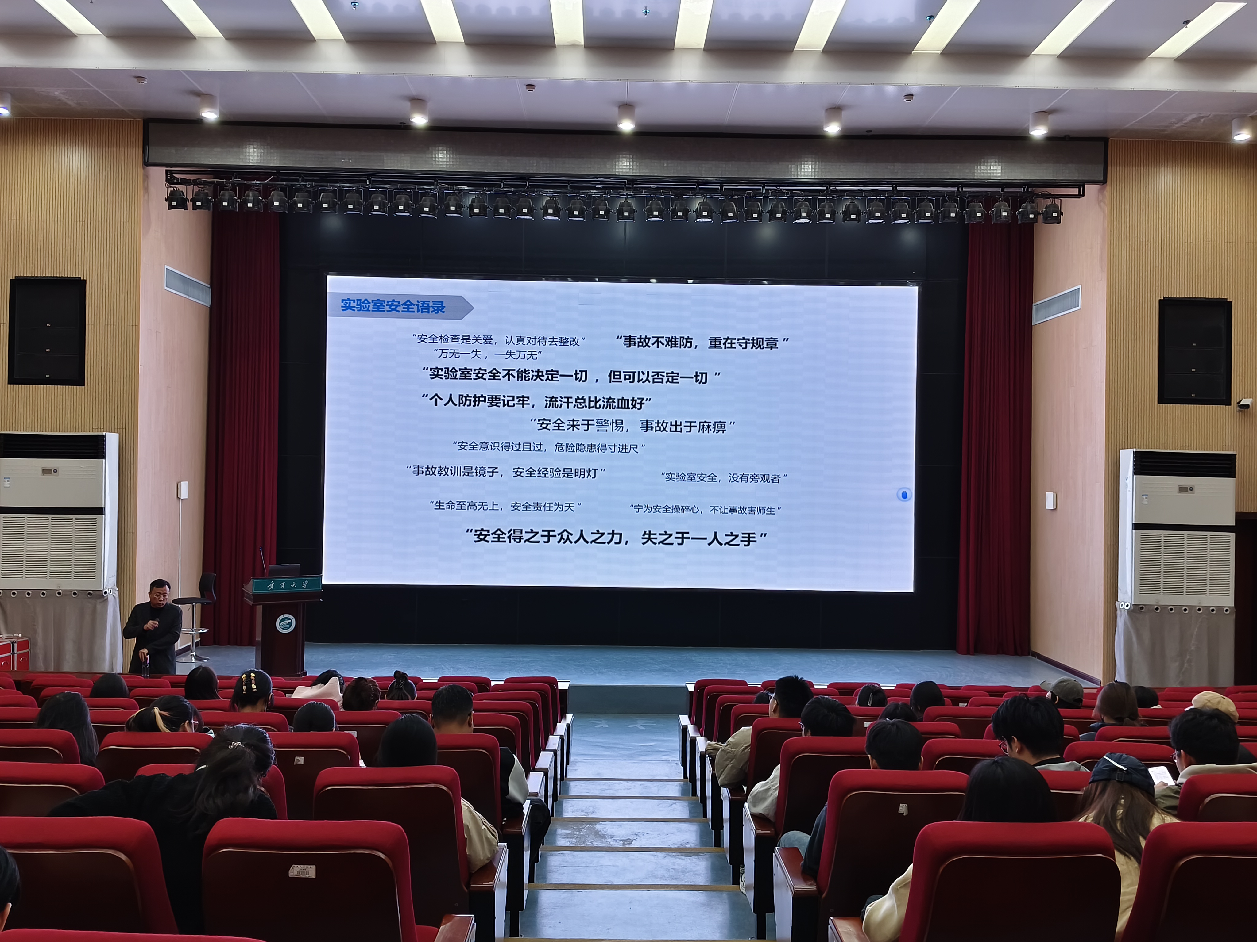 为切实增强新生的实验室安全意识,规范实验室行为,筑牢校园安全防线,10月29日和11月6日,资产与实验室管理处朱虹老师和学院任建林老师分别面向学院2025级本科生和研究生开展题为“新生第一课”的安全教育培训。