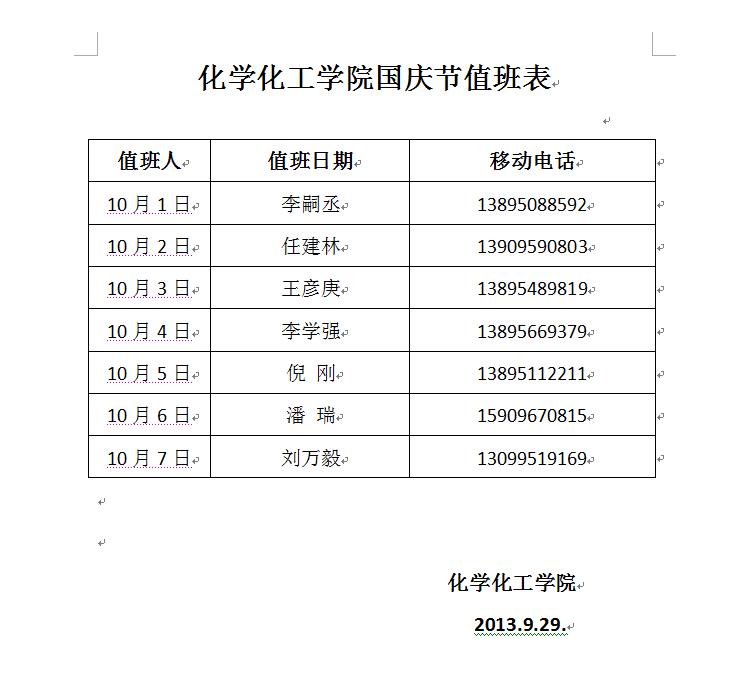 91黑料 国庆节值班表