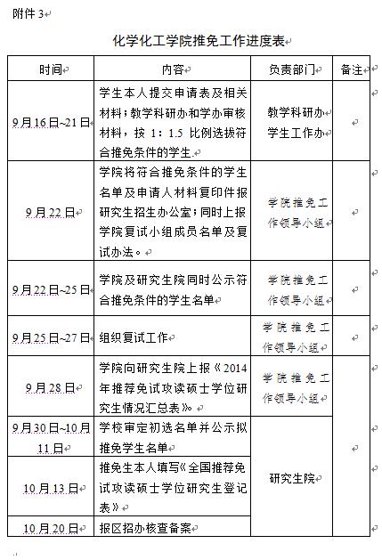 (一)学校研究生院按照教育部有关规定,制定年度推荐工作实施办法并及时公布。