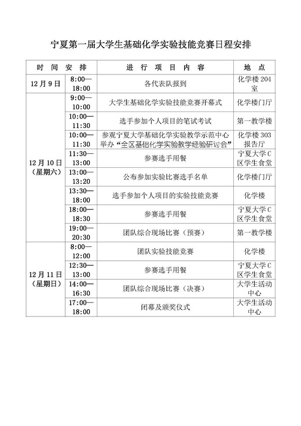 关于第一届大学生基础化学实验技能竞赛日程安排的通知