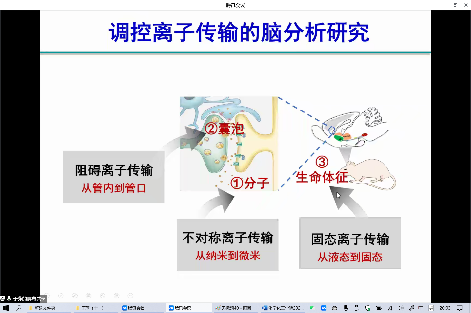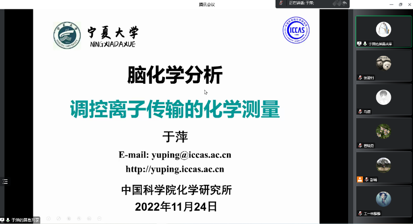 2022秋季系列学术报告会准时在线上举行。本次报告有幸邀请到中国科学院化学研究所活体分析化学重点实验室研究员、博士生导师、中国科学院大学岗位教授予萍,于教授做了以“脑化学分析—调控离子传输的化学测量”为题的学术报告。学院师生共140余人参加了此次报告。